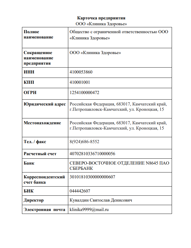 ООО «Клиника Здоровье»